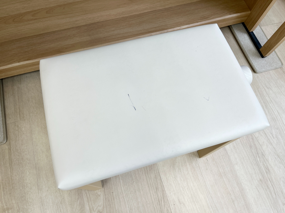 鍵盤表面に使用に伴う細かな擦れと座面に写真のようなインク染みがありますが、大きな傷はありません。