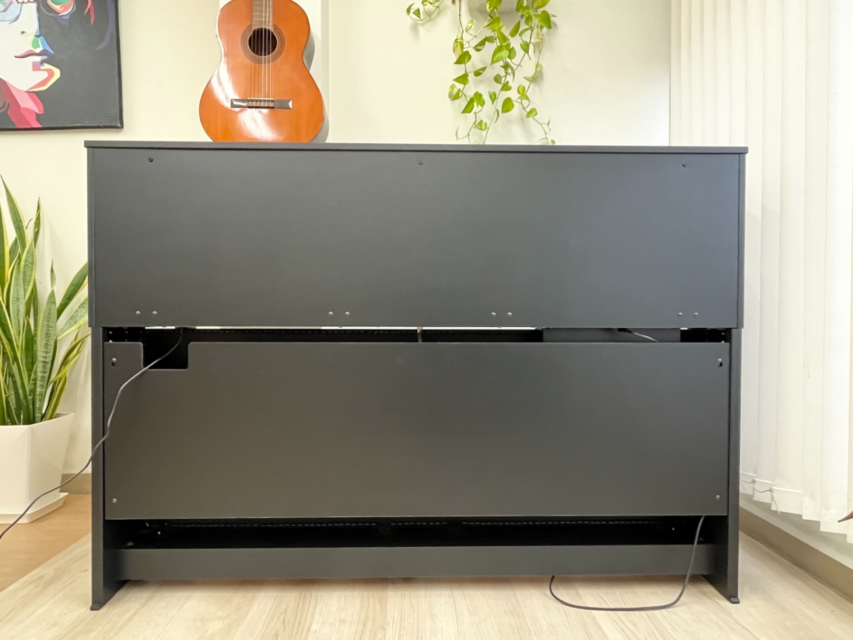 鍵盤下に大きなスピーカーが付いており、音の響きもより本格的な商品です。