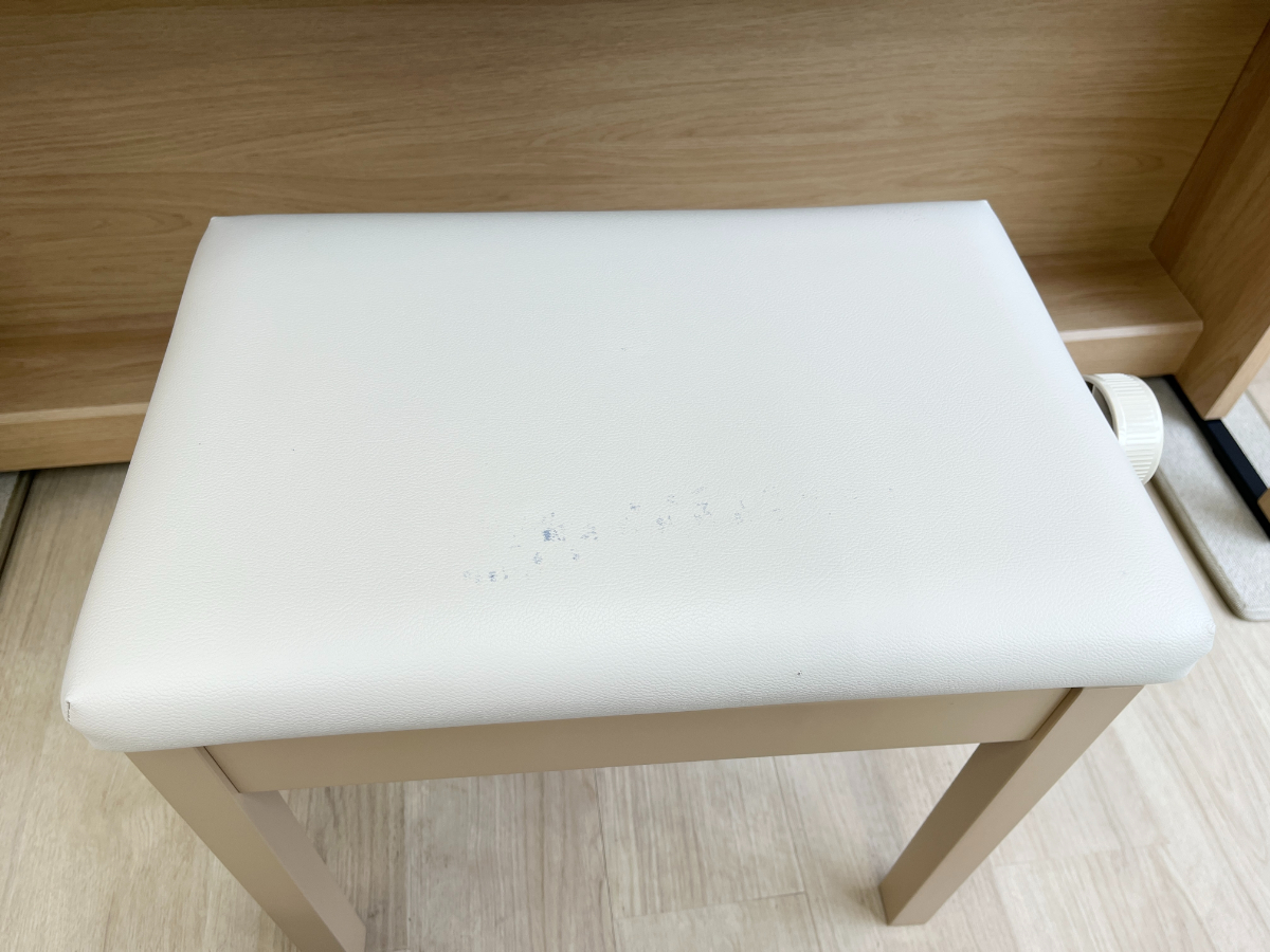 椅子の座面に写真のようなシミ・細かな傷がありますが、その他に目立つ傷や汚れは無く、鍵盤の状態も良好です。