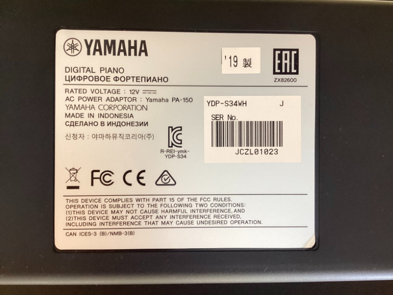 | ヤマハ | YDP-S34WH | ホワイトウッド調 | 2019 年製 |