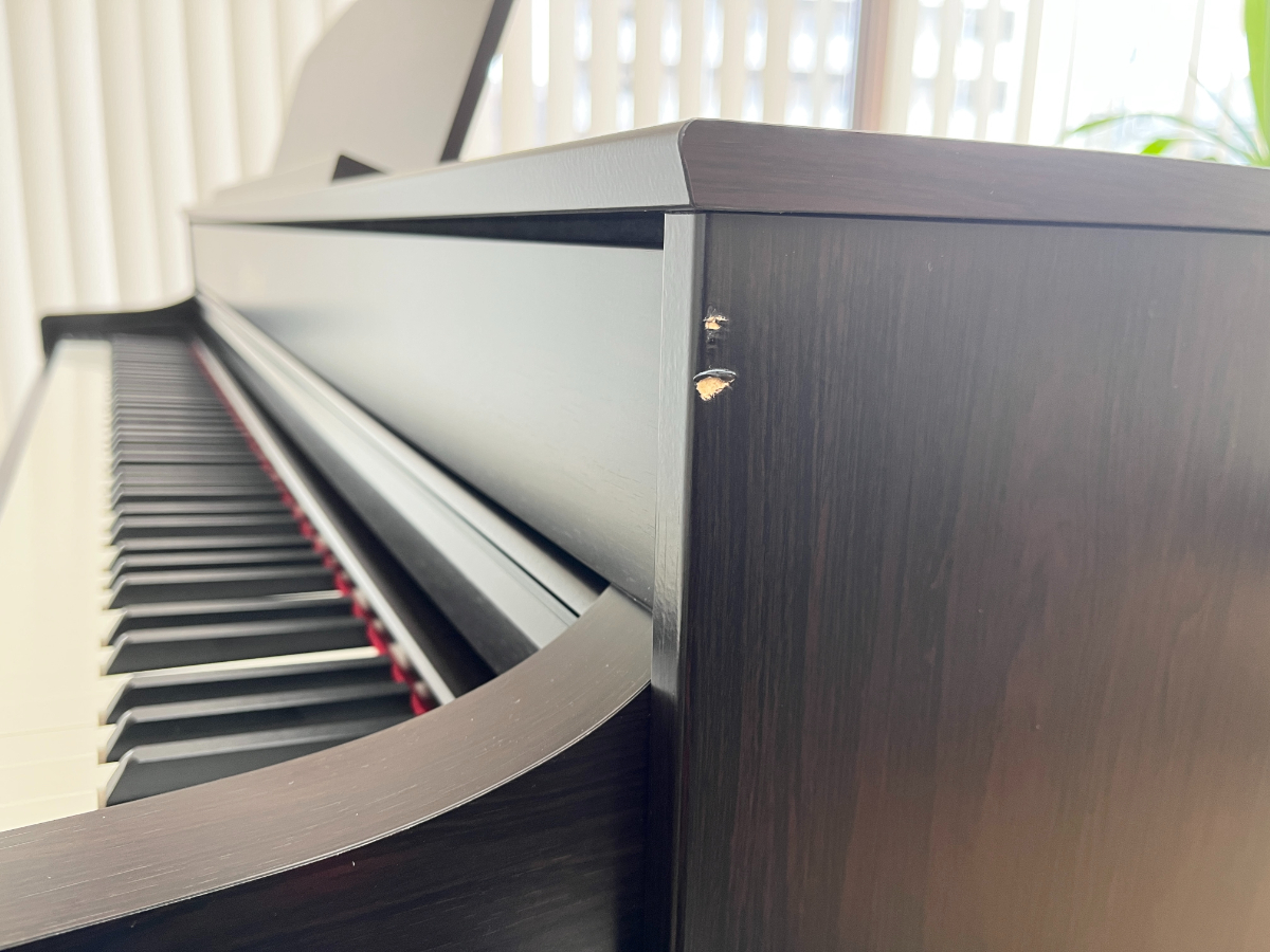 側面に写真の様な傷がありますが、そのほかに目立つ傷は無く、鍵盤の状態は良好です。